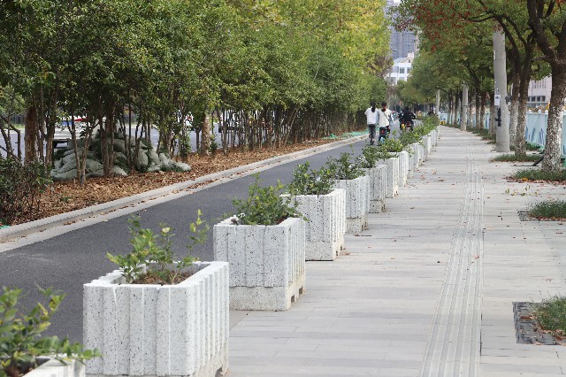 仿石材花箱式人行道隔離設施,不僅可防止車輛進入人行道破壞人行道板磚和路側(cè)石等市政設施,而且花箱內(nèi)綠植又增加了道路綠化量,提升了道路的景觀性,達到了實用性與美觀性相結(jié)合的雙重效果。宏路仿石材花箱采用機壓式特殊制作工藝,比以往木質(zhì)、鐵質(zhì)、鋁質(zhì)、PVC等材質(zhì)的花箱,透氣性和透水性更好,植物生長更為旺盛。