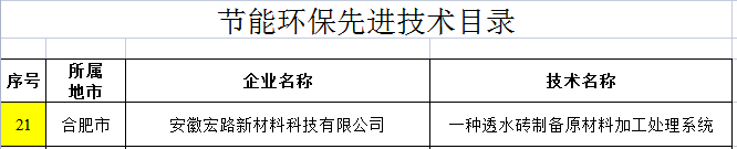 近日,安徽省經(jīng)濟(jì)和信息化廳發(fā)布,為促進(jìn)我省工業(yè)節(jié)能環(huán)保產(chǎn)業(yè)快速發(fā)展,經(jīng)企業(yè)申報、各地推薦、專家審核,省經(jīng)濟(jì)和信息化廳確定了2021年全省工業(yè)領(lǐng)域節(jié)能環(huán)保 “五個一百”推介目錄,其中安徽宏路新材料科技有限公司榮獲“節(jié)能環(huán)保優(yōu)質(zhì)生產(chǎn)企業(yè)”,我司發(fā)明專利“一種透水磚制備原材料加工處理系統(tǒng)”被授予“節(jié)能環(huán)保先進(jìn)技術(shù)”稱號!